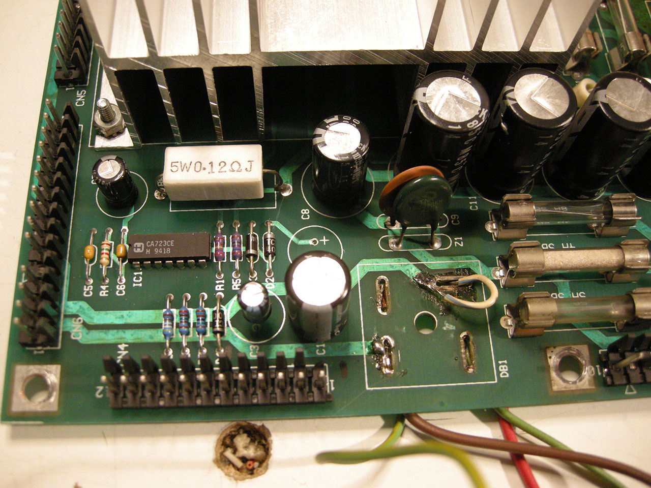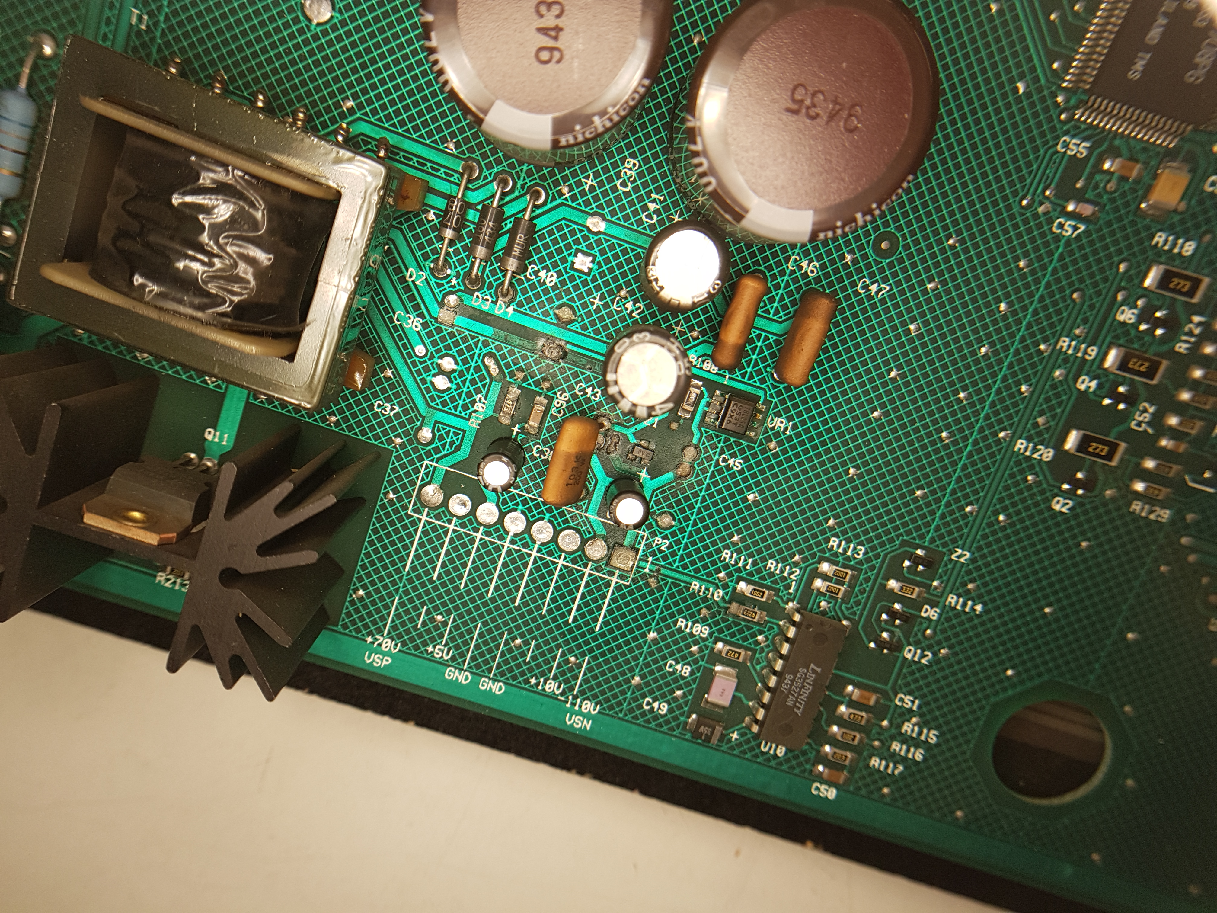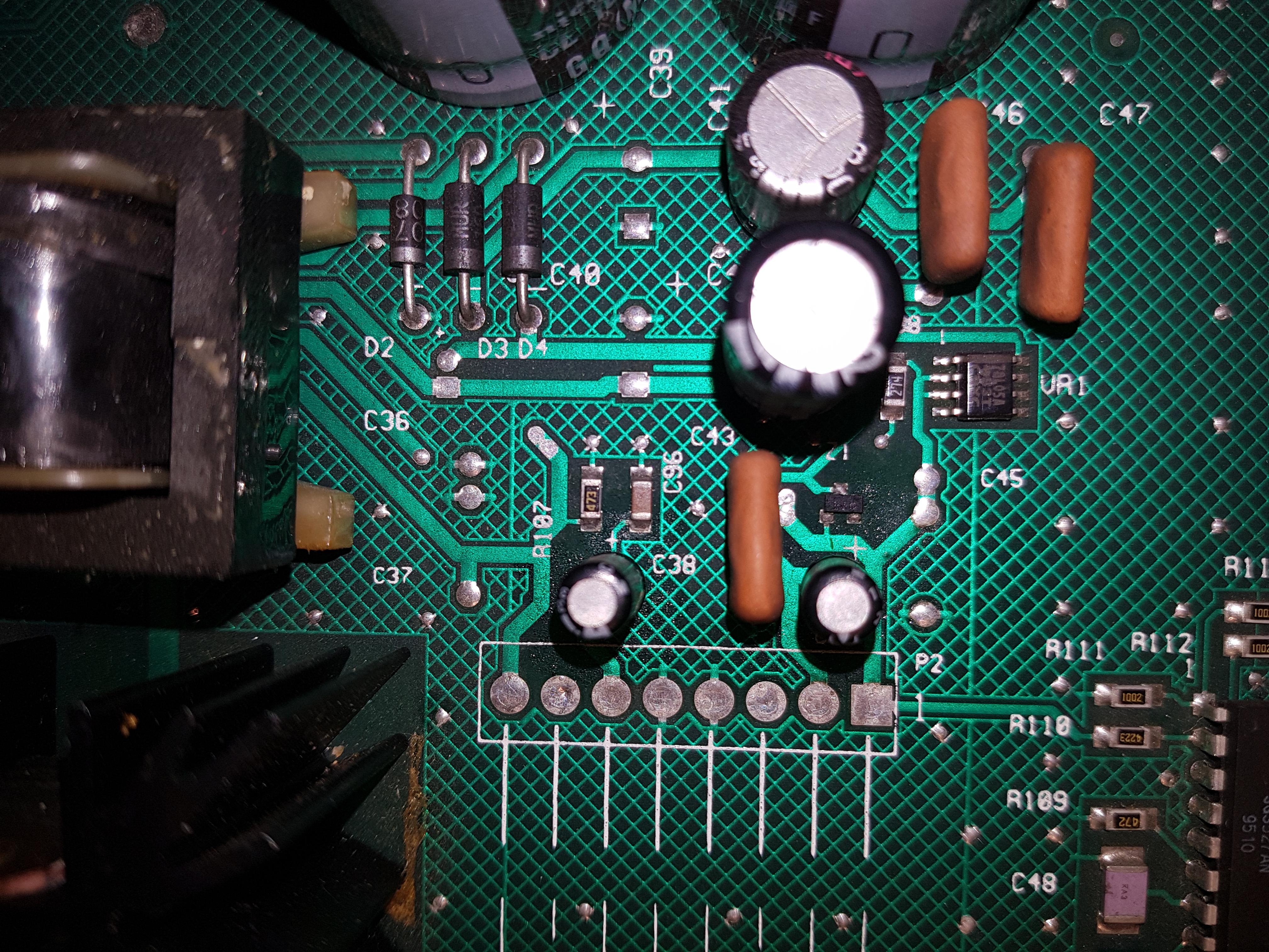 Pour remettre dans le contexte, j’ai refait une petite jeunesse à la Power Board en changeant C2 / C3 / DB1. Comme vous pouvez le voir le pont de diode avait déjà été changé et à l’arrache ! :9):