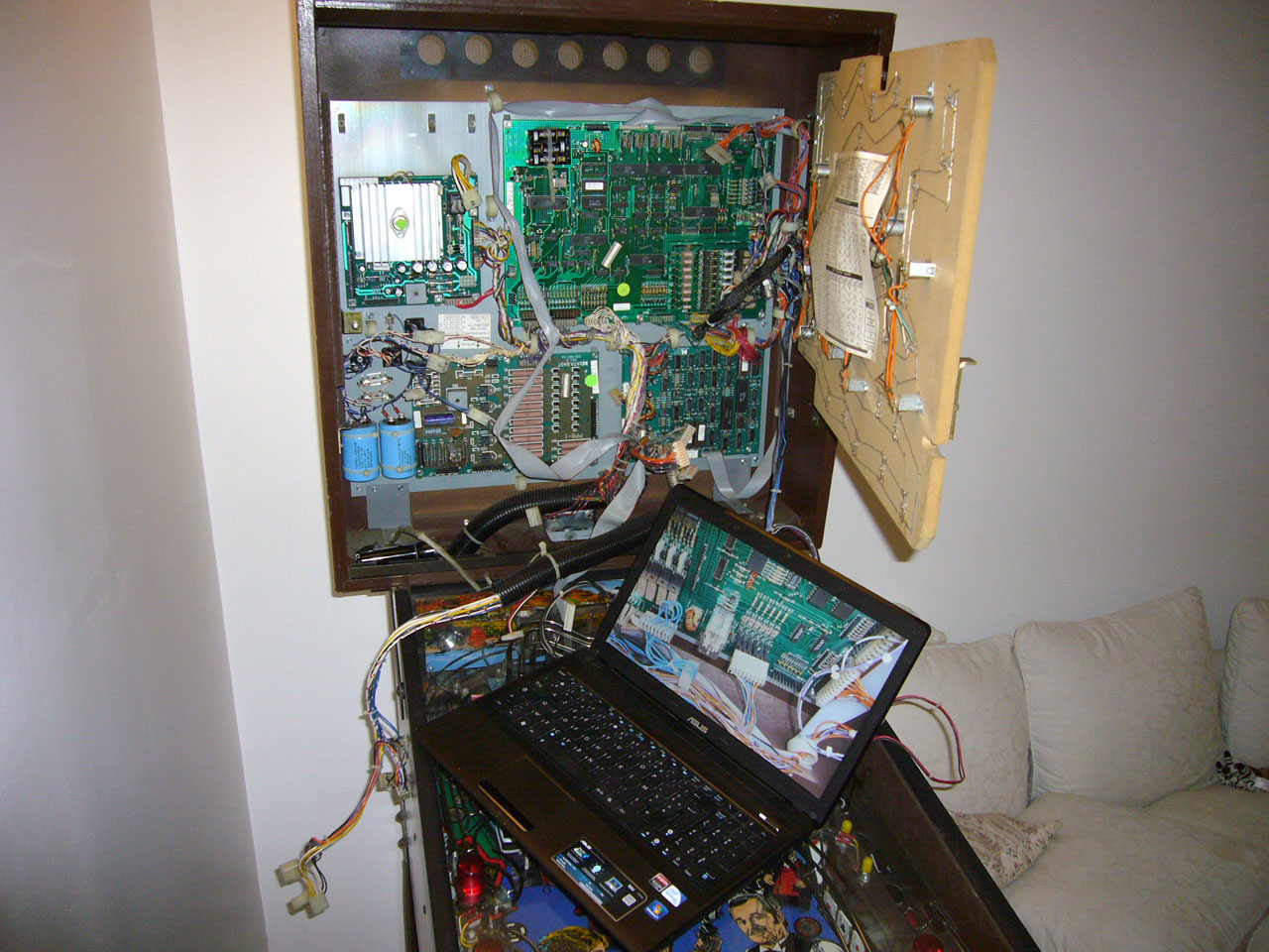 Vous savez tout de mon histoire, en espérant que l’allumage se passera bien, car ma femme m’a quand même glissé, en voyant tous les câbles dans tous les sens : « il n’est pas prêt de marcher ce flipper »…. Elles sont pas drôles dès fois !!! :D: