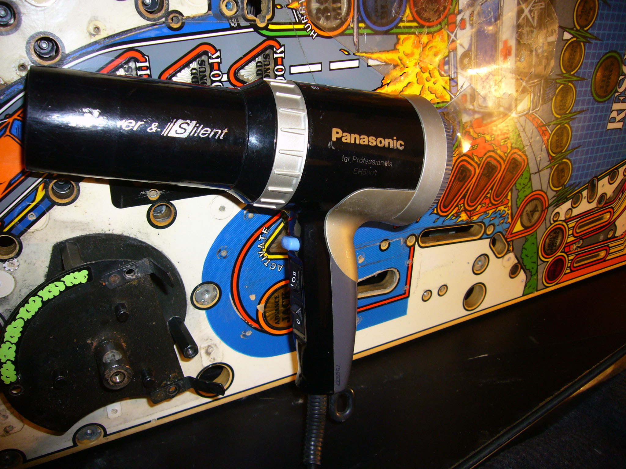 Alors, pour la température, c'est l'omerta chez les vendeurs de sèche-cheveux, ils indiquent jamais la température ! Bref, je sais pas si c'est 100°C ou pas, j'ai une fonction thermomètre sur mon multimètre (c'est pas un Fluke....) donc je ne connais pas sa marge réelle, mais l'indication est monté à 110, mais en tout cas ça crame bien les doigts en ça enlève le mylar :x26: