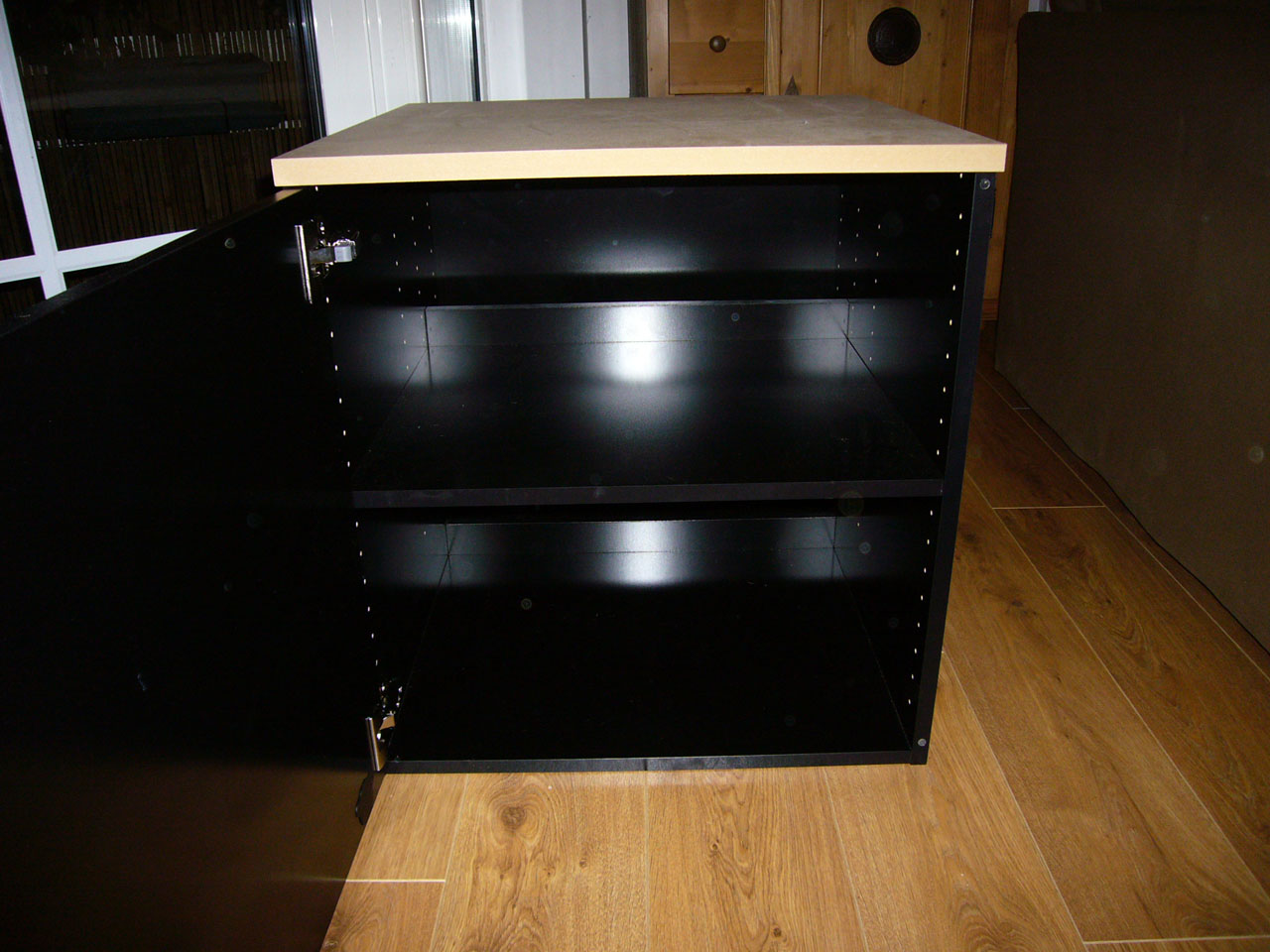 ATTENTION, ce caisson n'a pas de planche sur le dessus, puisqu'à la base, c'est un caisson bas pour cuisine.