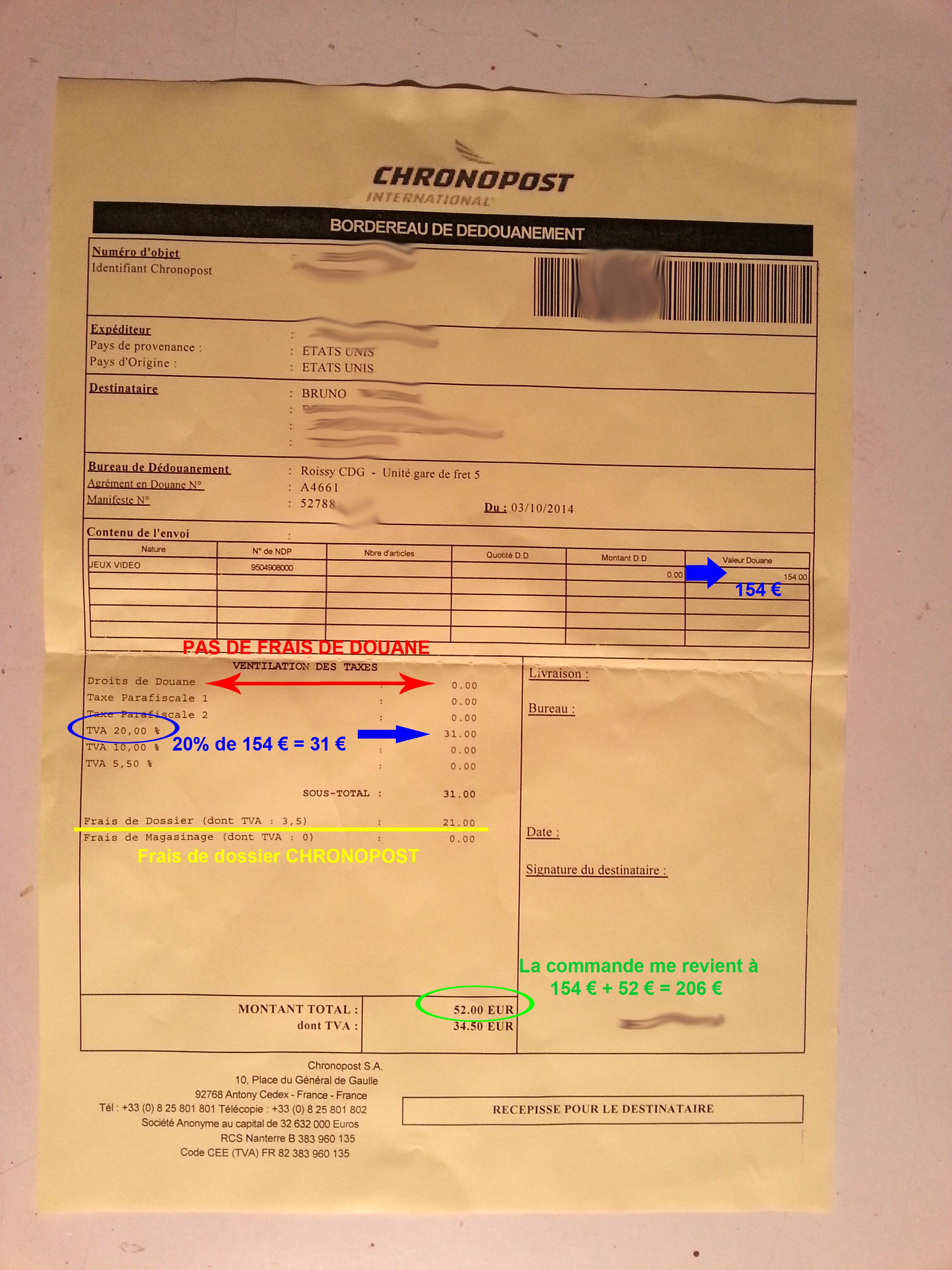Attention à ne pas confondre frais de douane et TVA...c'est pas pareil....faut appeler un chat un chat.... :#):