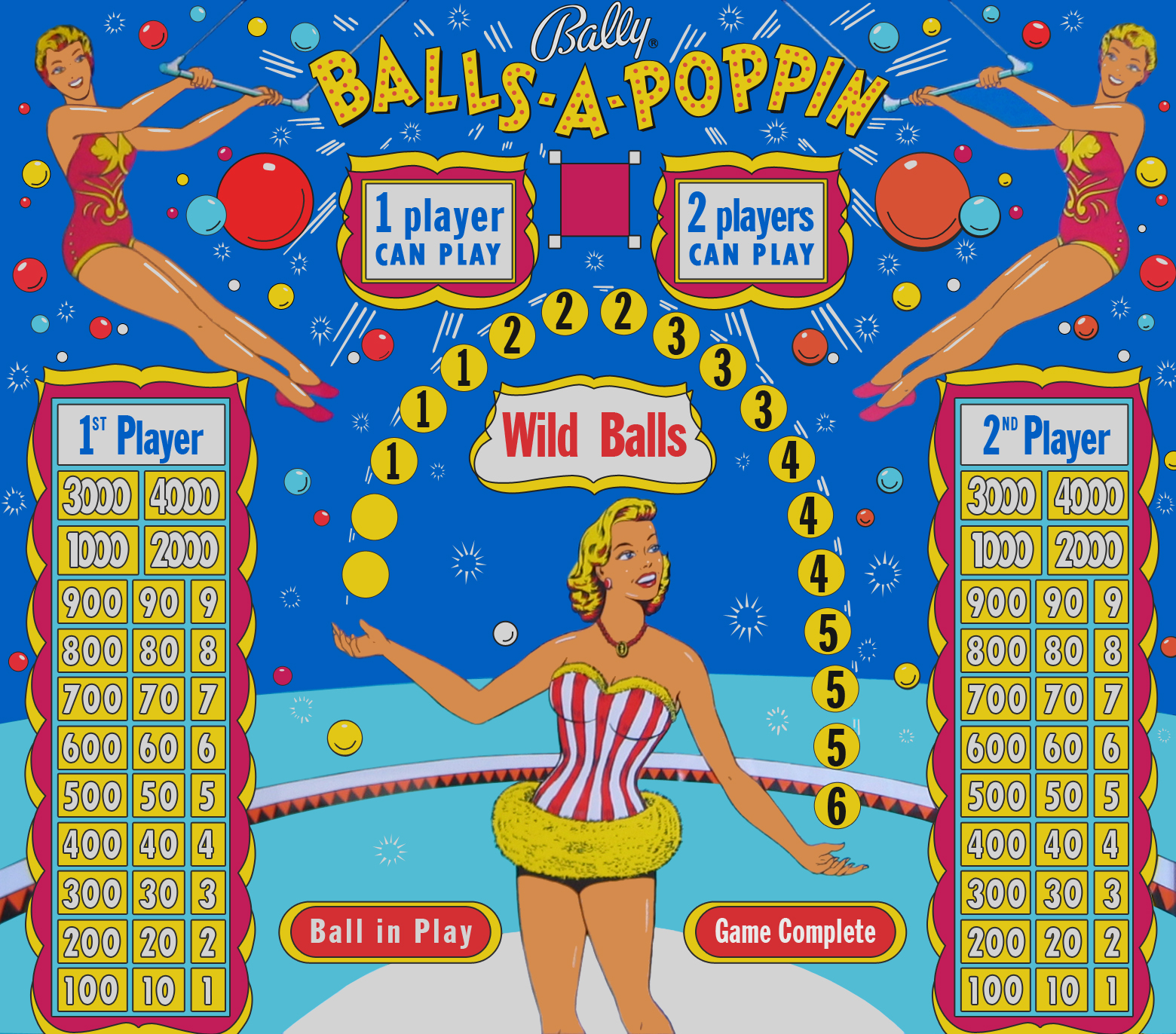 Première table avec multiball et Bally n'a pas lésiné: jusqu'à 10 billes sur le plateau!