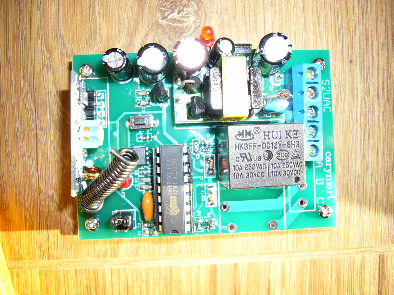 Ce module est de type RF (Radio Fréquence), il fonctionne en 220 volts. Je l’ai trouvé sur la baie chez Carymart. Coût de l’ensemble, 31 € frais de port inclus. Il en existe une multitude, 9 V, 12 V, 24 V, 220V, 1, 2 ou 3 voies…