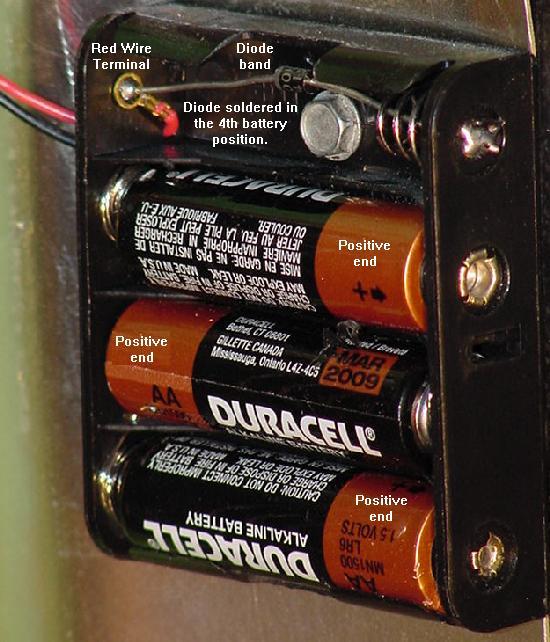 Un support de piles déporté avec une diode de blocage. Le fil rouge du support de piles va vers la borne « + » sur la carte CPU.
