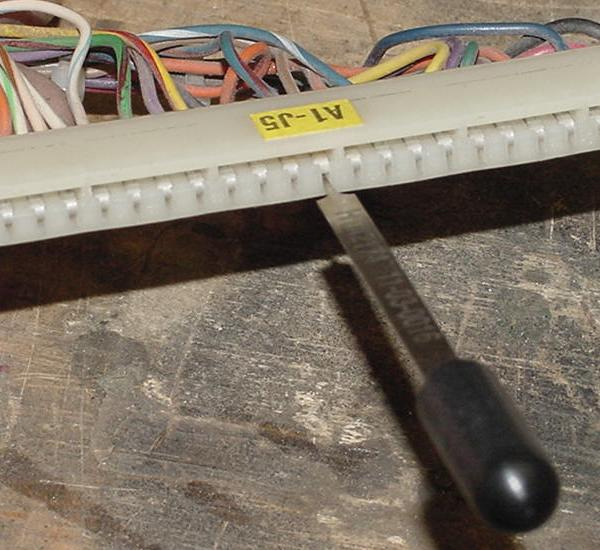 Outil d'extraction de cosse Molex, en train d'extraire une cosse
