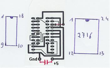 Schéma d'une carte adaptateur EPROM 2716 pour PROM System1 (source: Site Web de Léon).